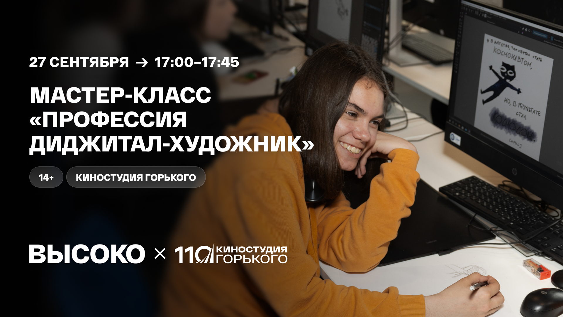 В рамках мастер-класса ребята познакомятся с работой на графическом планшете, изучат основные функции программы для рисования и создадут иллюстрацию со своим персонажем.